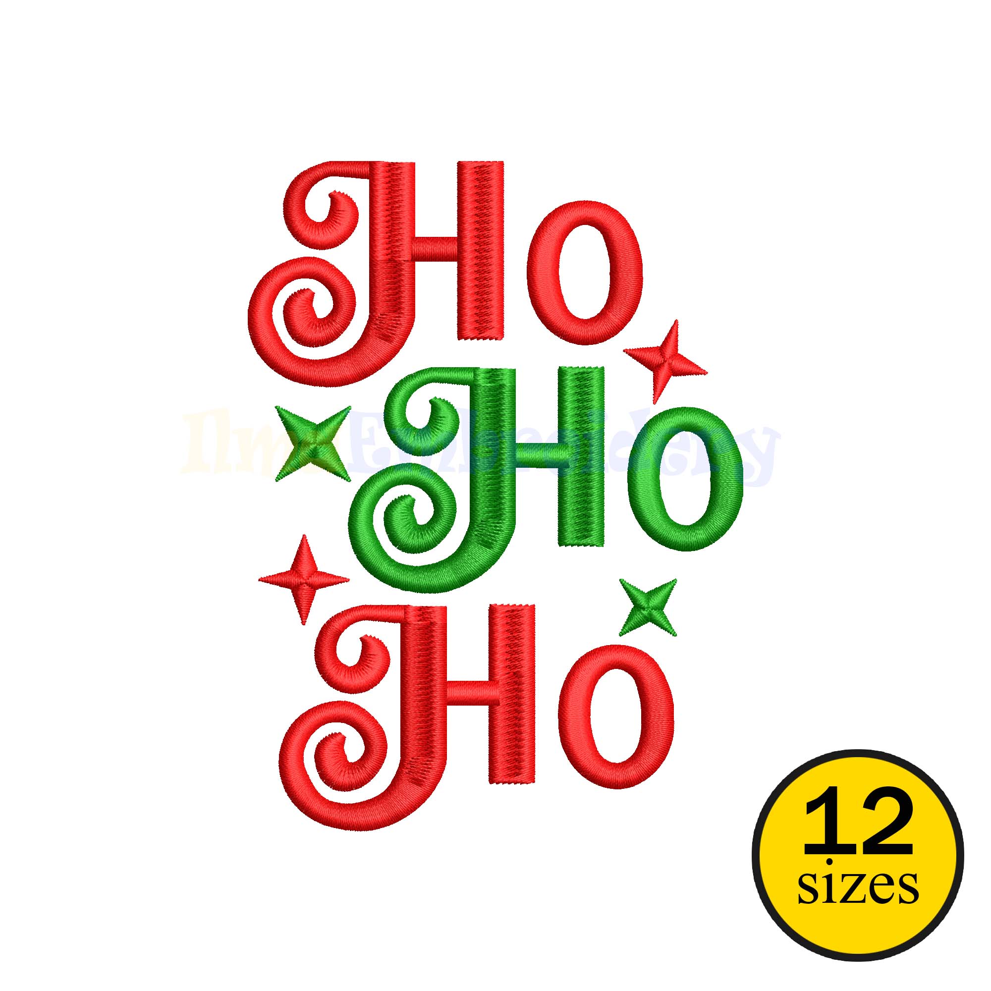 Christmas Ho Ho Ho with Star Embroidery Design, Festive Santa Saying Machine Embroidery File, Holiday Embroidery Pattern, 12 Sizes